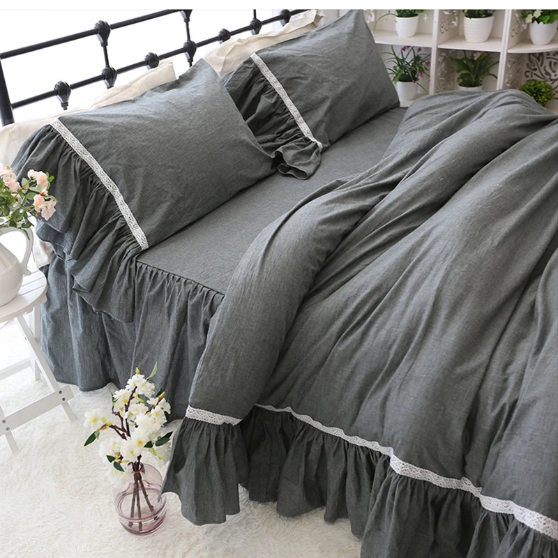 Dark Gray Bed Skirt: Fashion solid color bed skirt pillowcases bedroom bedding full queen king size.